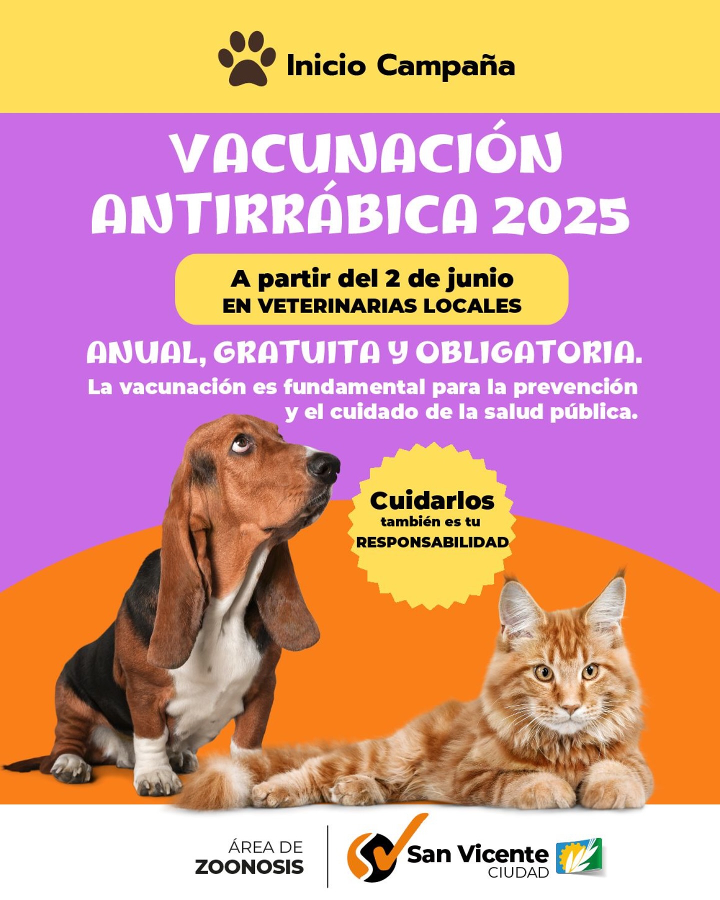 A partir del 2 de junio, comienza la Campaña de Vacunación Antirrábica, anual, gratuita y obligatoria.